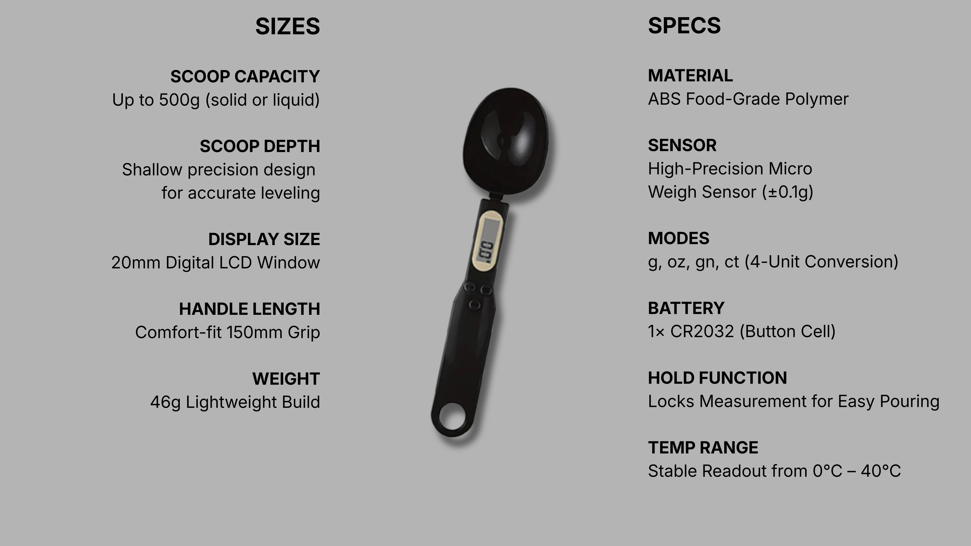 With inspiration drawn from saving your time, the Scaler Blackout was created so you don’t have to keep wasting time. All you need to do is take the spoon, scoop your food, and it tells you the weight right then and there. These sell out quickly, don't wait.